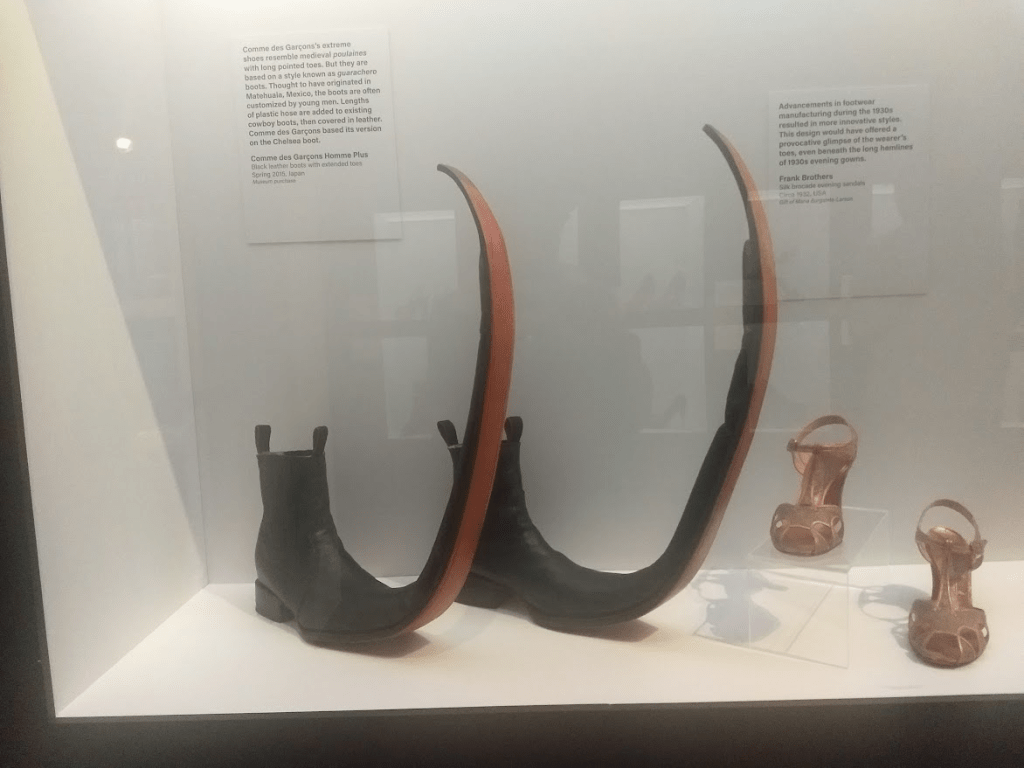 The room is broken into sections or themes. First, I noticed shoes that were just unique (like those bad boys by Comme des Garçons.). Maybe that is not a theme, but it is what I noticed. Then you have some heels. And then you have historical reference shoes.