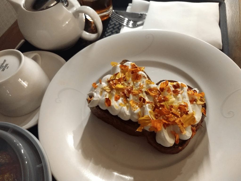 - Fancy Toast: “Whipped Ricotta, Satsuma Mandarin Marmalade, Arare, Shiso” I don’t really know what that meant, but it was beautiful. I want every serving of toast to be that beautiful. It mostly tasted of the marmalade, but I am more so going to get it again for looks.