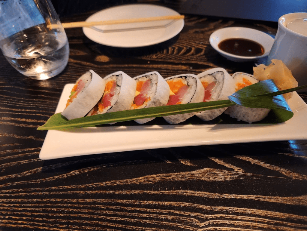 Getting there just after 6 eased my peace of mind. My travel companion and I were seated immediately at the bar, which was really a small round table near the bar. Everyone we interacted with was lovely. Our waitstaff was very nice and eager to answer questions. They explained dishes, demonstrating their detailed training on the menu. This was one my few sushi experiences above the grocery store options, so I wanted to try as much as possible. You could think of it like a collection of Japanese tapas that are shareable. Here is what we ordered: