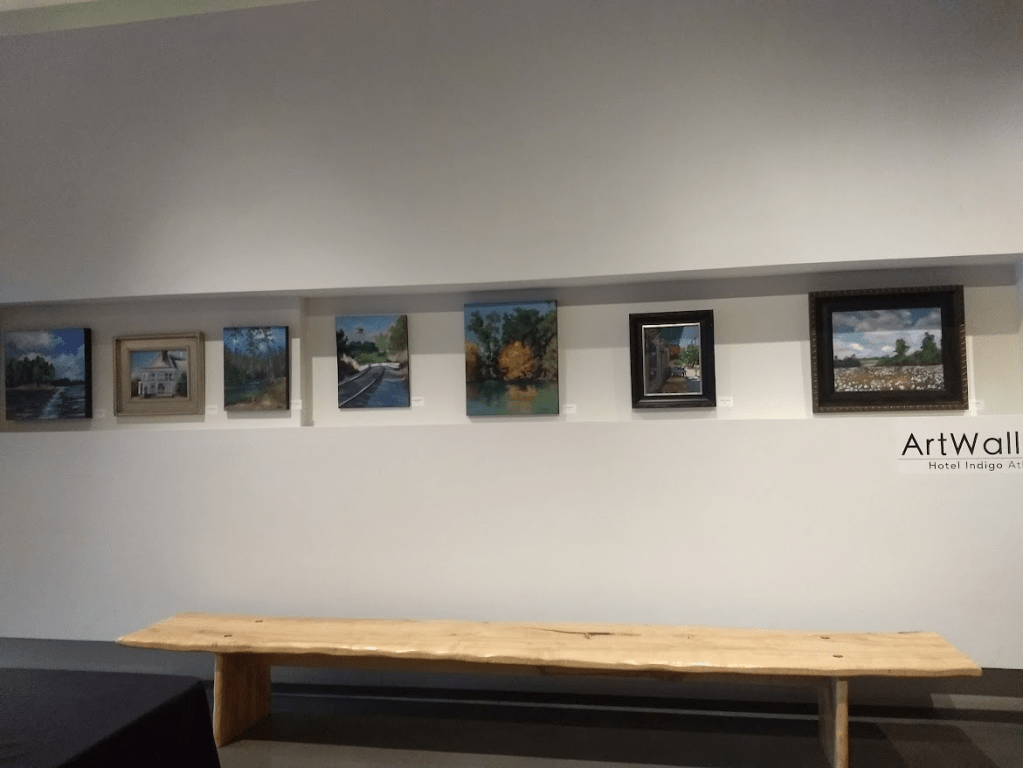 On the walk to discover the gym, I noticed the featured art on the walls. I appreciated that little touch. The gym itself was quite small, and I didn’t go inside. (I did my best to take a picture without getting the guy who was running on a treadmill.) There was art featured on the walls on the first floor leading up to the gym. I appreciated that.
