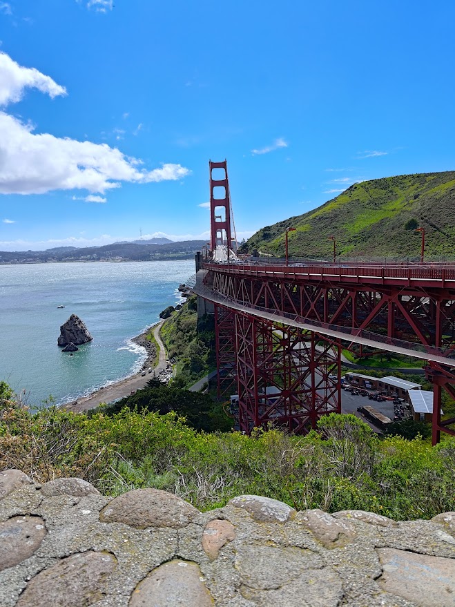 In contrast, we took a stop at Baker Beach, because what is a trip to California without a beach stop. It was still chilly in the late march air. But strolling along the near empty beach, I could experience the tranquility of the ocean waves awhile marveling at human ingenuity. And then go meditate on a rock.