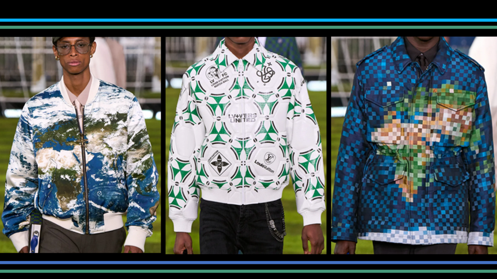 In the live chat, LV notes that this is a multicultural show and an ode to travel and multiculturalism. I certainly noticed the number of trunks literally carted around and the world themed print. The old school soccer ball pattern turned into jackets and jerseys was a nod to the world’s game or maybe the concurrent Euro Cup.