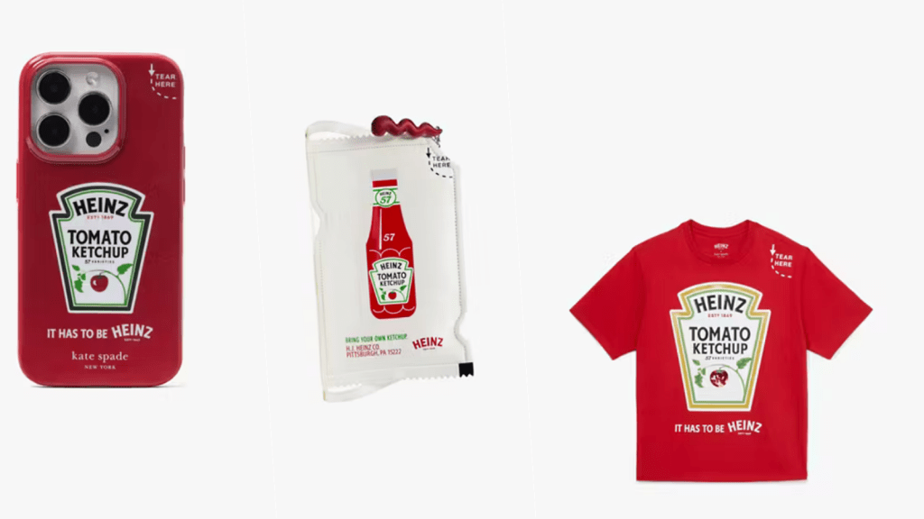 Of all the collabs I have seen in fashion of late, I did not see this one coming. Heinz Ketchup has partnered with Kate Spade. You can now demonstrate your love for the condiment by not just putting it on everything but also wearing it. You might, like I did think, “What?” or “That’s ridiculous.”