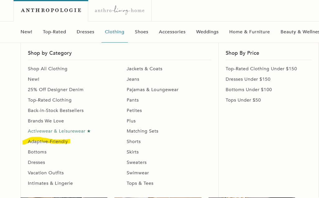Anthropologie has launched adaptive friendly styles available on their site. The launch included conversations with 4 influencers and disability advocates who also model the items on the site.