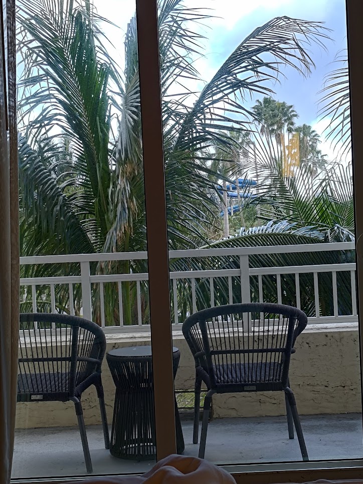 The property was set up like a small-scale resort. The rooms were divided amongst buildings on the property, linked to together by a walkway and punctuated with lush foliage. There was a water park which I didn’t visit but experienced vicariously through gleeful screams of children having a good time. And beyond what I could see, there were golf courses.