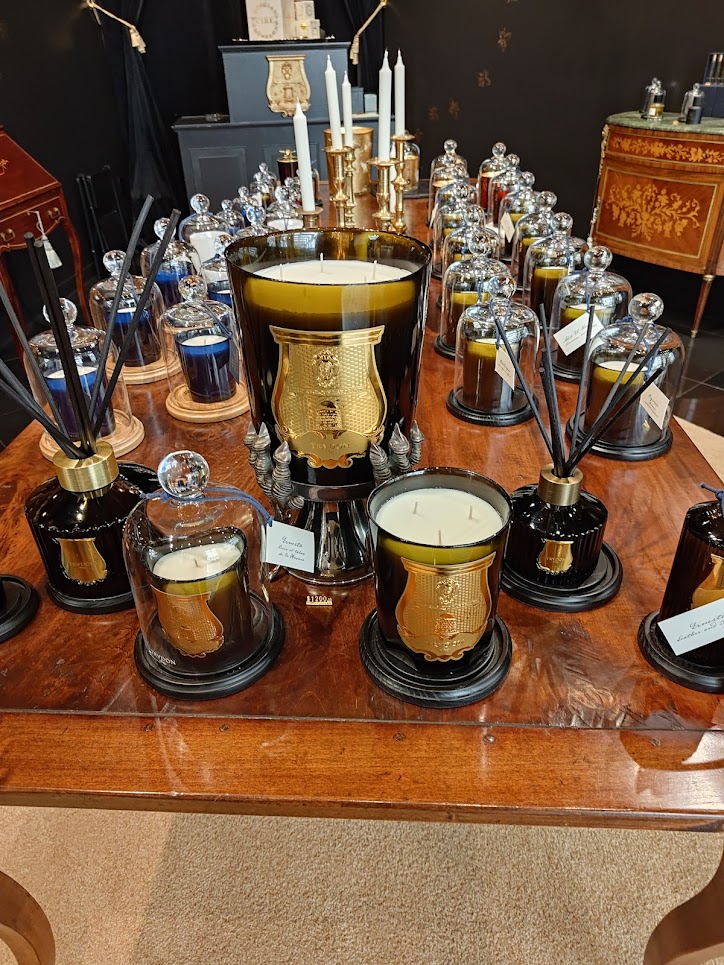 The room was dimly lit. It felt like a cozy study or sitting room. On one side were replica busts of famous French figures, made into candles. Figures such as Louis XIV, Marie Antoinette, and Napoleon perched regally the room. It’s an homage to the history of the world’s oldest candle brand, formerly the official candle maker of the French court and royal family. I suppose you could burn these candles, as a protest to the monarchy, but the wicks don’t extend to the bottom of the candle. You would more likely end up with a half-melted horror statuette or art piece commentary.