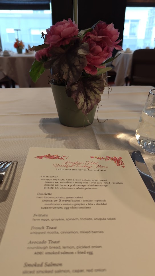 When I booked my stay at the Langham Hotel in New York City, I did it through American Express. That gave me daily breakfasts, a credit to be used for dining, and a whole lot of excuses to try the food. Multiple mornings, I started breakfasts in their dining room.