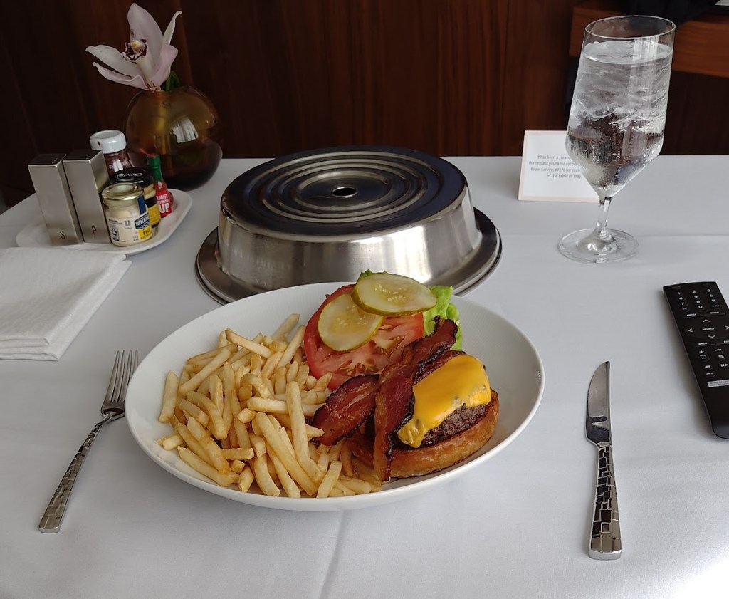 I also tried room service or in-room dining. I ordered the crispy chicken sandwich. Meh, I wish it was more flavorful. The Langham Burger, just as good as it was in Boston.