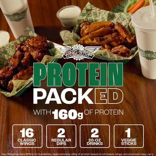 Scrolling down my feed I saw that Wingstop has a new offering: their Protein Pack. As they say, it is “packed” with 160 grams of protein. Honestly that sounds pretty good to me right now.