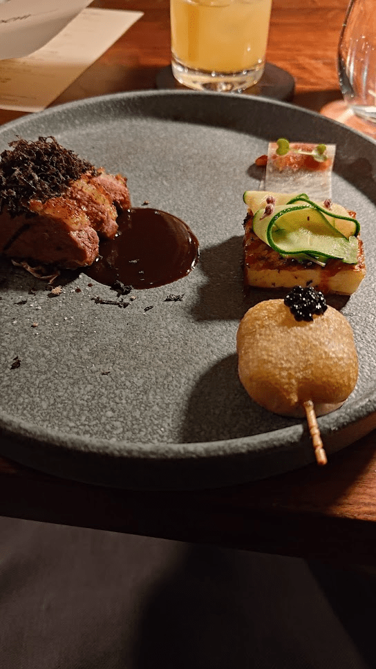 I definitely misplaced my notes for a course. There was definitely the skewer (pictured) and a potato something that I’ve forgotten about. Not that it was forgettable. It was good, but how good? I couldn’t tell you right now.