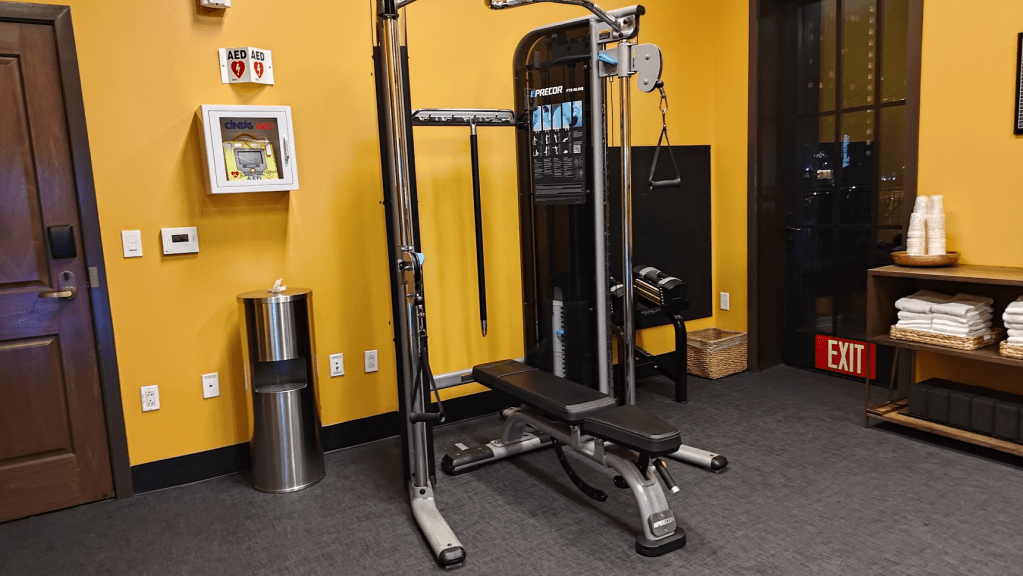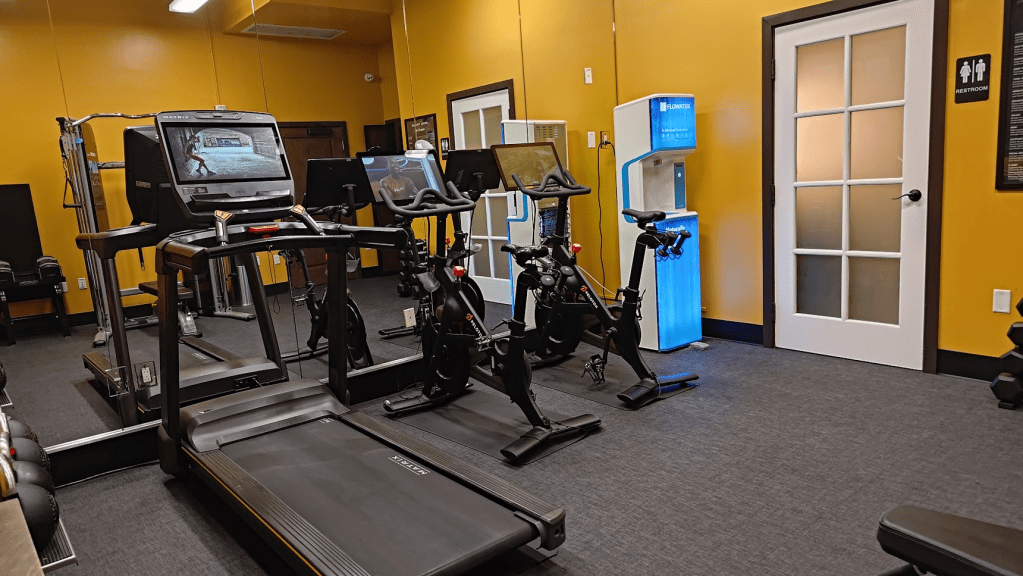 The gym however was tiny. A single treadmill, two Peloton bikes. I could barely find room for a mat to do floor exercises. It honestly felt like it was too small for even two people, especially when person in there on the bike kept stretching her arms out. There was no way I could get on the bike next to her to do a Peloton workout.